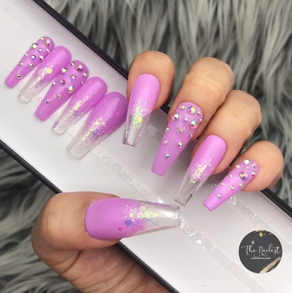 Orchid Glitter Breezy Purple Glitter Crystal Press On Nails Unicorn Any Shape Fake Nails False Nails Glue On Nailes