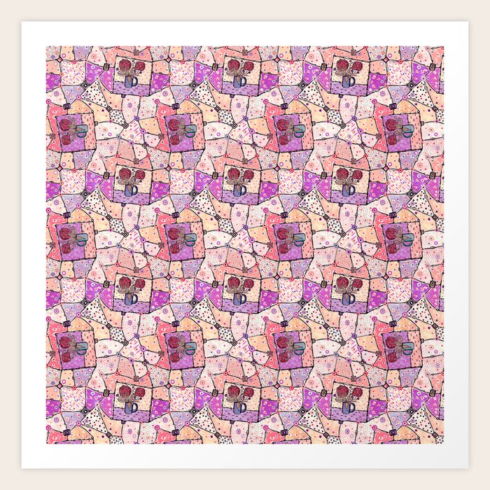 Vintage Grandma Quilt Textured Watercolor Lavender Purple Flower Quilting Pattern Illustration Art Print By Limolida
